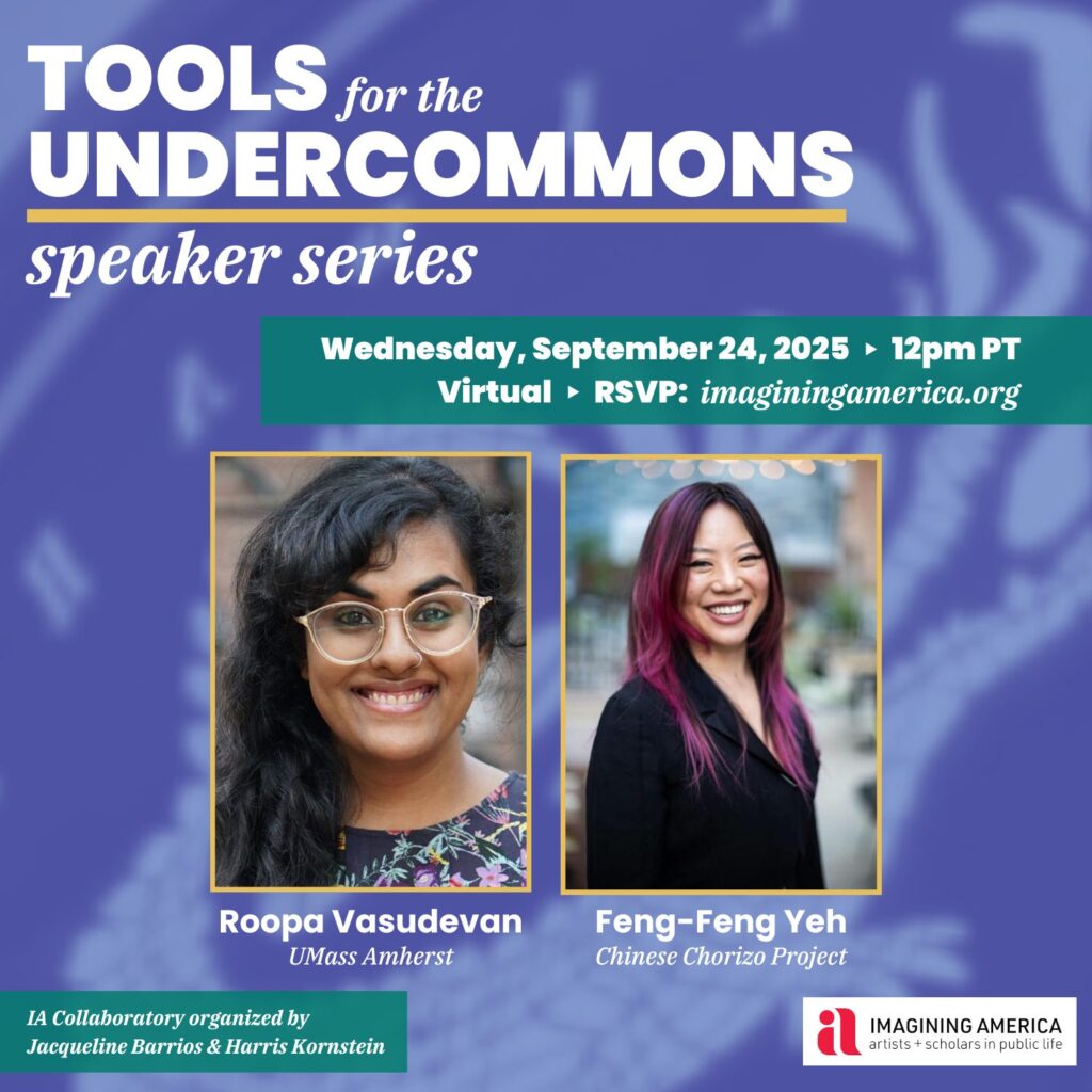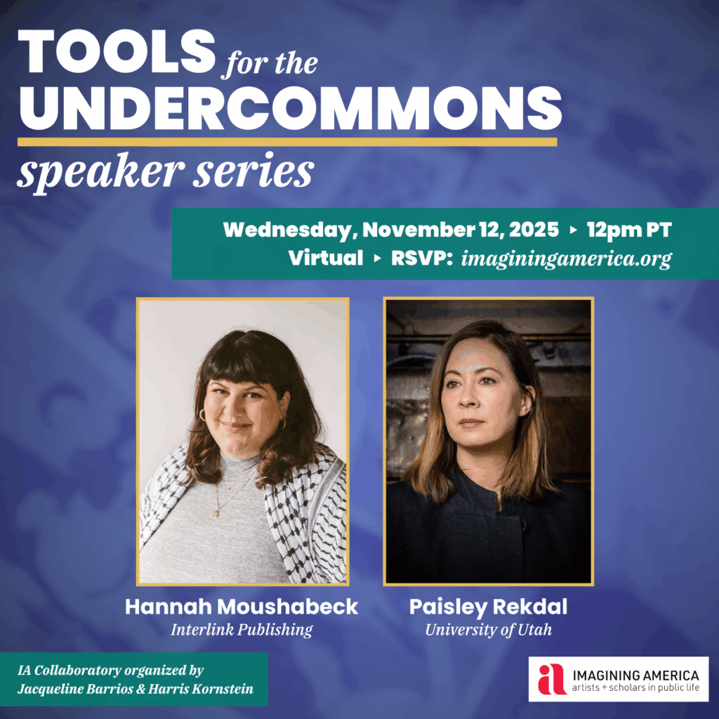 This Collaboratory focuses on practitioners who have always worked in partnership with communities to create public knowledge and practice the kind of “study” that Stefano Harney and Fred Moten describe in their theorization of The Undercommons. A series of virtual sessions will share field-tested strategies, tactics, or methods that maintain alternate centers of gravity within (and outside of) academia, while also serving as an undercommons of its own. We see this Collaboratory as supporting ongoing efforts to develop new pathways for research that is meaningful and accessible to those most impacted, that advances the careers of public scholars/artists and cultural workers (by expanding what “counts” in various fields), and that demonstrates the value of these kinds of work.